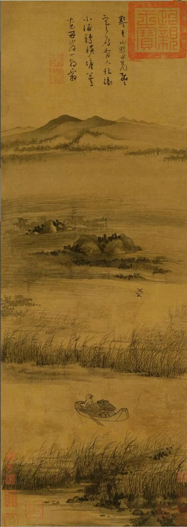 “晓来风静烟波定,徐来短艇资闲兴”,晨光微露,万里长江,风停波定,一叶扁舟缓缓驶来,随兴所至,随波而行。“满目秋江澄似镜”,秋江澄平入镜,涵容万有,照彻一切。“明月迥,更添两岸芦花映”,明月也与往常不同,格外明亮,把两岸的芦花映照得历历分明。