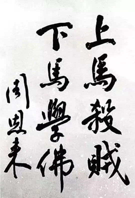 关于杀贼二字,还有一个小故事。1939年4月,时任中共中央军委副主席和国民政府军委会政治部副部长的周恩来,前来南岳游击干部训练班检查工作,在与时任八路军参谋长和南岳游击干部训练班副教育长的叶剑英接见演文和巨赞法师时,得知他们正在筹划组织抗日救亡团体“南岳佛教救国协会”,决心为抗日事业尽一份力量。周恩来高度评价僧人们的爱国热情,并为他们挥毫书赠了“上马杀贼,下马学佛”的题词以示激励。或许有人会觉得“杀贼”二字似与佛教不符,其实这两个字不仅指出了当日的时代需要和协会宗旨,更是本就源自佛教教义——杀贼便是阿罗汉的三义之一,可见周恩来总理对佛教义理也有着深入了解。