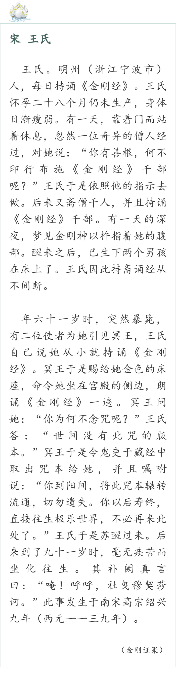 莲录 | 诵金刚经千卷死而复生流通补阙真言往生净土的王氏