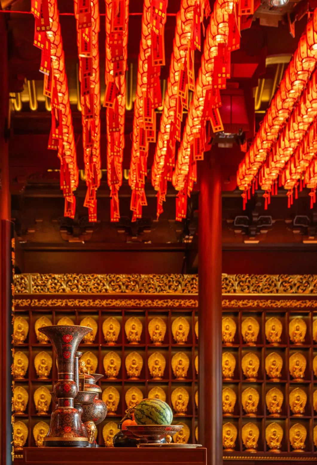 玉佛禅寺殿堂内外的盏盏平安灯