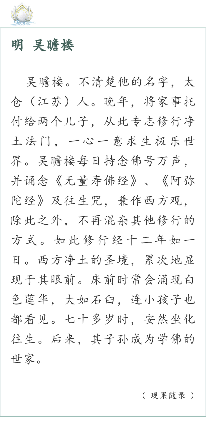 莲录 | 笃修净土一意不杂,圣境累现事佛传家的吴瞻楼